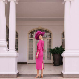 Vestido Midi Escote pico y manga francesa – Couture Club