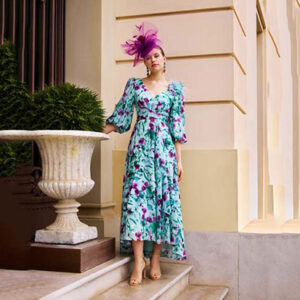 Vestido Largo Escote pico y manga francesa – Couture Club
