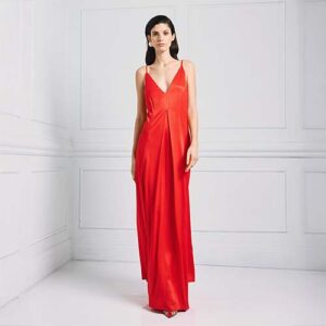 Vestido de Satén Escote en V – Access Fashion
