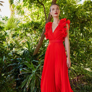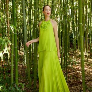 Vestido Largo Plisado cuello Halter – Carla Ruiz
