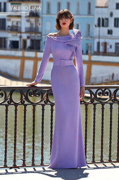 Con un cuerpo de líneas nítidas que emana glamour y sutileza, este vestido está diseñado para las apasionadas del estilo sofisticado. El tejido elástico de crepe y su elegante corte sirena ofrecen una caída atemporal. El destacado escote barco asimétrico toma el centro del escenario con un adorno de bieses, hábilmente elaborado con el mismo tejido en forma de flor que recorre el escote hasta llegar a un hombro, dando paso a unas mangas largas. La cintura se ajusta con gracia gracias a un cinturón forrado.