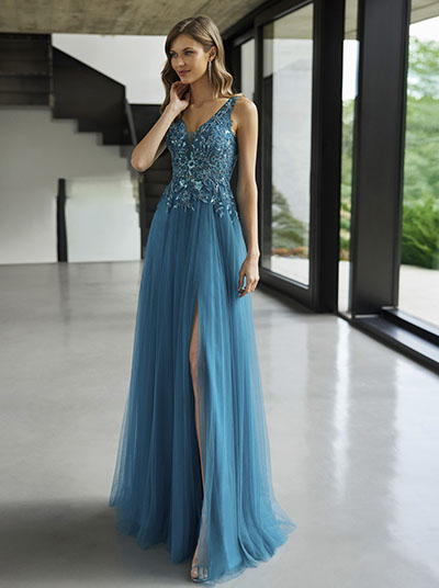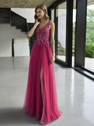 Exclusivo vestido de fiesta largo de Marfil Barcelona de gran sofisticación, un modelo que encarna la elegancia en cada detalle. Confeccionado con tul y encaje pedrería, este deslumbrante diseño presenta un refinado escote y una espalda en V que añaden un toque de distinción. Cada elemento de este vestido ha sido cuidadosamente seleccionado para ofrecer un estilo inigualable. Lucir este exclusivo modelo de Marfil Barcelona es asegurarse de destacar con gracia y estilo en cualquier evento especial.