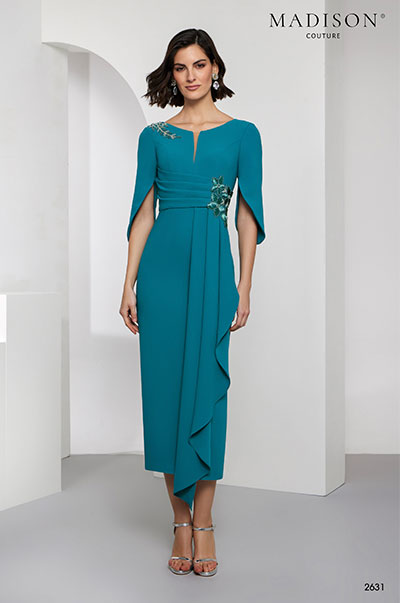 Home  /  Tienda  /  Cóctel, Firmas, Madison Couture, Madison Couture NC, Nueva Colección  /  Vestido Midi con bordados y Manga Capa – Madison Couture