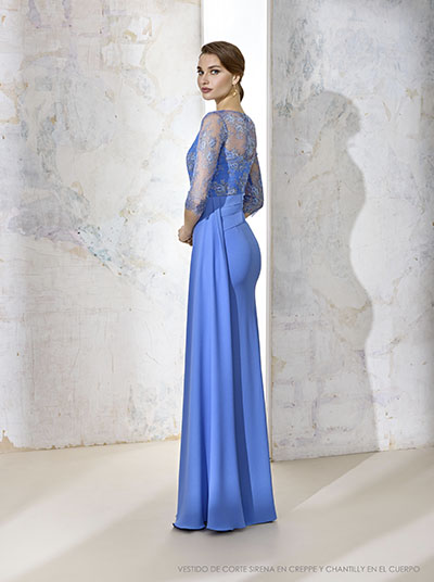 Elegante vestido de corte sirena, confeccionado en creppé y enriquecido con detalles de chantilly en el cuerpo. La silueta sirena abraza y resalta tus curvas con gracia, mientras que el chantilly agrega un toque de encaje delicado y romántico al diseño. La combinación de creppé y chantilly crea una estética sofisticada y atemporal, ideal para eventos formales. Este vestido es la elección perfecta para aquellas que buscan un estilo que sea a la vez moderno y clásico. Haz una declaración de elegancia con este impresionante vestido de corte sirena, fusionando la textura suave del creppé con la delicadeza del chantilly.