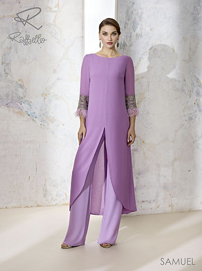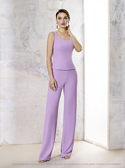 Elegante conjunto de pantalón y blusón. Los pantalones, confeccionados en creppé, ofrecen una caída suave y una silueta moderna. El blusón, en georgette, agrega un toque etéreo y femenino. Los detalles de plumas aportan un toque de glamour y ligereza, mientras que la puntilla de pedrería añade destellos sutiles de elegancia. Este conjunto es la elección perfecta para eventos especiales que demandan estilo y comodidad. Un equilibrio armonioso entre la modernidad del creppé, la ligereza del georgette y los detalles lujosos, este conjunto garantiza una presencia impactante y sofisticada en cualquier ocasión.