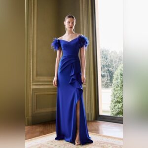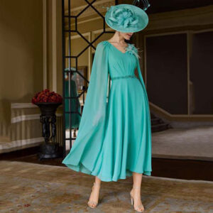 Vestido Midi con bordados y Manga Capa – Madison Couture