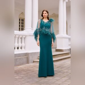 Vestido Largo escote en V y Capa – Couture Club